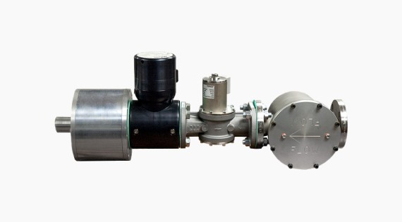 The GTI+ system utilizes a fully electronic, advanced gas train design, which includes the Altronic AGV5 Fuel Valve, a microprocessor-based smart valve equipped with a fast-acting voice coil for rapid and accurate response. The AGV5 serves as both the zero governor pressure controller and fuel valve to control the bi-fuel substitution rate across the engine load range. The valve responds in closed-loop control to an electronic pressure signal within the mixer housing, ensuring that the fuel demand at the mixer is satisfied at any given time and eliminating pressure droop associated with pneumatic pressure control systems. This closed-loop control minimizes the effects of pressure drops between the outlet of the gas train and the mixer inlet. This allows the desired substitution rates to be met, while maintaining the fundamental safety characteristics of a zero pressure draw-through design. The AGV5 is a proven design that has been utilized as the fuel control device in hundreds of gas engine applications. Its soft-seat poppet is highly tolerant of gas stream contamination and offers fail safe reliable service. Since the AGV5 is rated to a higher pressure, the gas train can accept gas supply pressure of up to 50 psig, eliminating the need to reduce higher gas supply pressures to lower gas train inlet pressures with an added primary regulator. The new enhanced gas train also uses a highly reliable, automatic, fast-acting, industrial shutoff valve to provide dual shutoff capability. The actuator is equipped with the ability to visually confirm the OPEN/CLOSED position of the valve.